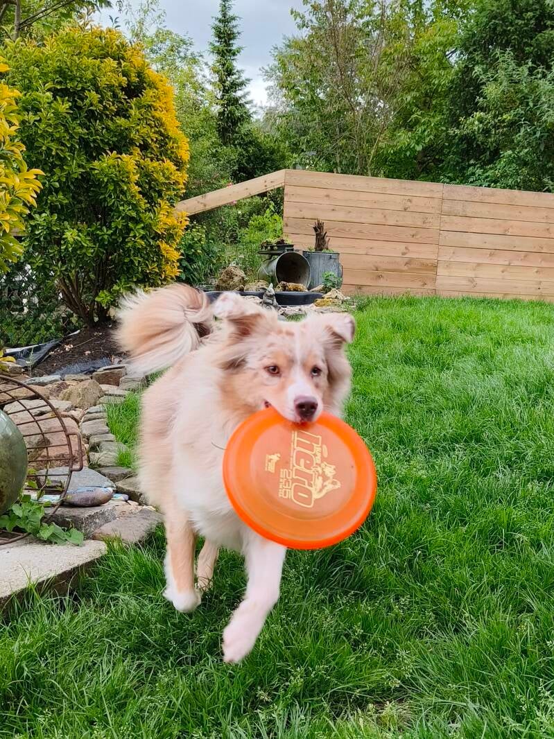 Ik vertelde ook in mijn vorige blog dat mams misschien wel zelf een cursus zou gaan volgen voor frisbee instructeur. Nou, ze heeft zich ingeschreven hoor! Op 14 juli is het zover. Dan gaat ze weer een paar dagen naar juf Karen en de andere juffen van Happy Tails om te leren hoe ze zelf frisbee les kan geven en natuurlijk nog beter te leren frisbeeën.